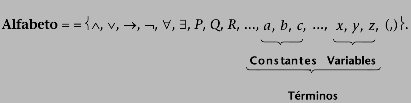 - Si P es un símbolo de predicado y t1,…, tn (n >= 0) son símbolos de términos, entonces P(t1,…,tn) es una fórmula. Estas fórmulas también se denominan átomos o fórmulas atómicas.
