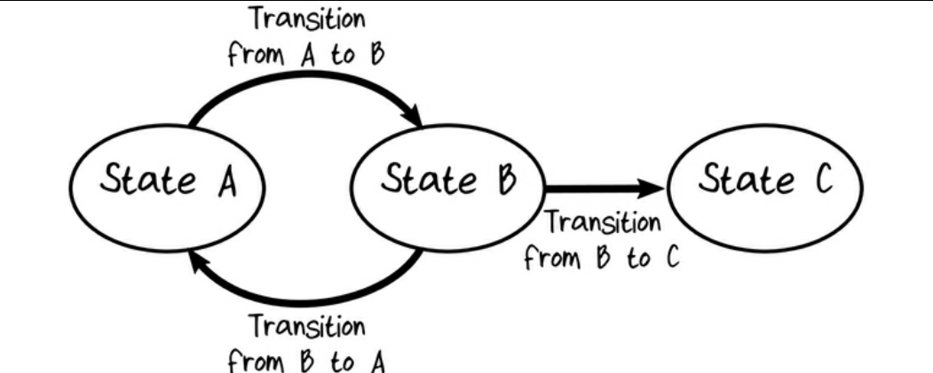 La definición es el conjunto de estados y sus transciones. como la siguiente