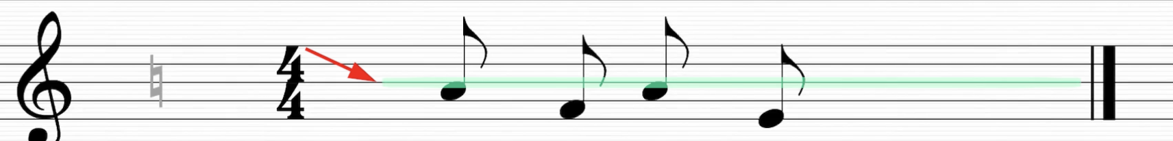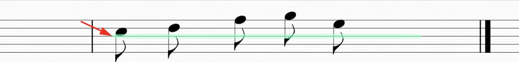 Es importante resaltar que cuando las cabezas de nota se situan por debajo de la tercera línea. La plica y corchete apuntan hacia arriba (cabeza a la izquierda)