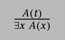 Puede entenderse de la forma siguiente: si algo (A) puede decirse de t (A(t)), entonces existe un elemento del dominio del cual puede decirse A (∃x A(x)).