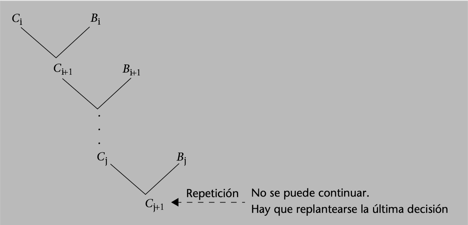 Esta técnica consiste en anotar todas las decisiones que se toman y, para cada decisión, las posibles alternativas. Cuando se llega a un punto en el que no se puede continuar, se revoca la última de las decisiones tomadas que todavía tenga una alternativa no considerada y se continúa a partir de aquel punto.