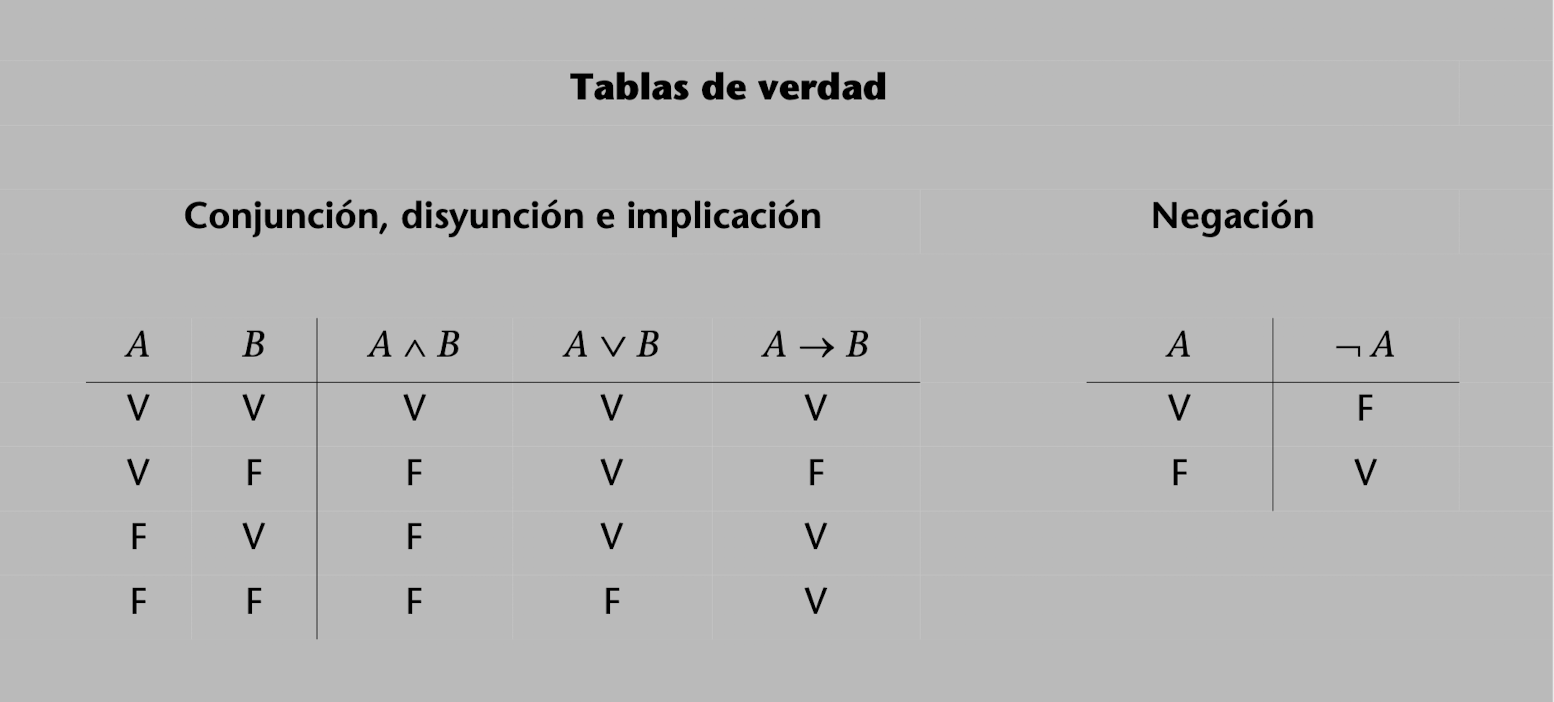 Un enunciado en el que aparezcan n átomos tendrá una tabla de verdad con 2n filas, una por cada posible combinación de los valores V y F asignados a cada uno de los átomos.